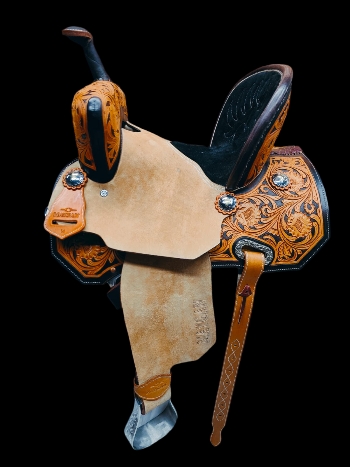 La selle MAYGAN Barrel Racing est conçue pour les cavaliers qui recherchent performance et rapidité. Chaque détail a été pensé pour optimiser votre course et maximiser votre potentiel en compétition.