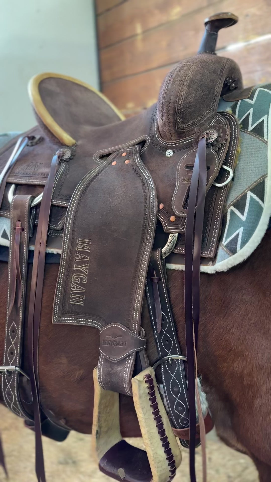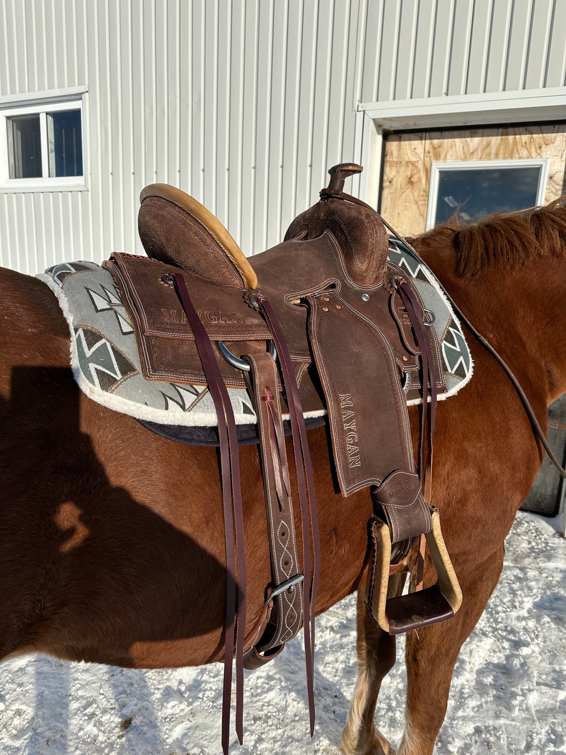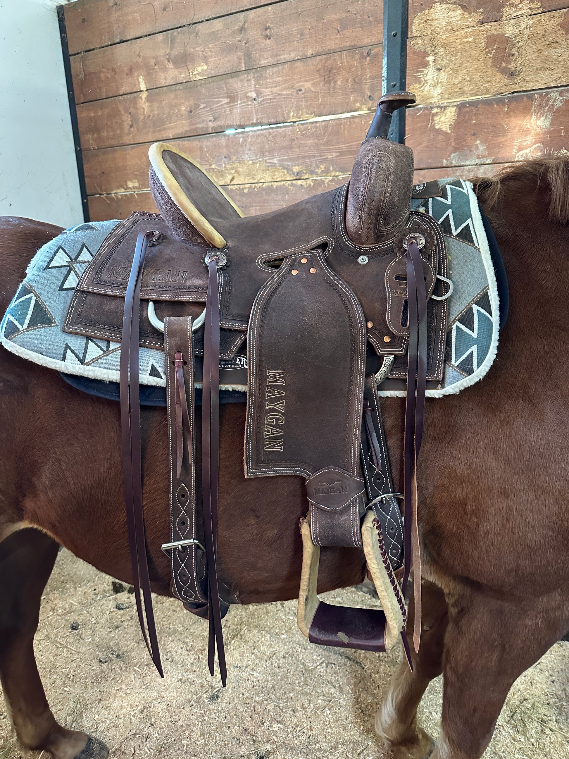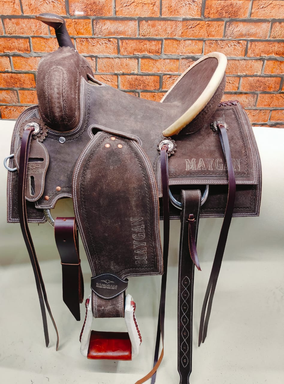 La selle MAYGAN Ranch Roping est conçue pour répondre aux exigences les plus rigoureuses du travail de ranch et du roping. Alliant robustesse et confort, elle offre la stabilité nécessaire pour les mouvements brusques tout en assurant une position optimale du cavalier.